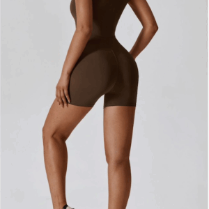 The cut features a low scoop neckline and a sleeveless shape. It keeps things easy around the shoulders and gives a clean look through the chest. The shorts portion fits close to the legs, offering full freedom to move without slipping or riding up.