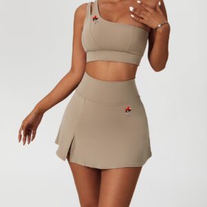 The skort brings the same balance of comfort and function. It has a skirt look with built-in shorts for full coverage. The inner layer fits close to the body while the outer layer moves freely. The waistband gives soft support and stays in place throughout the day.